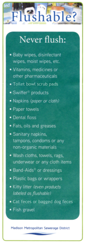 Roto-Rooter® has been clearing clogged drains since 1935, when Samuel Blanc patented the first electric drain cleaning machineand began the Roto-Rooter® franchise business. Modern drain cleaning machines still function pretty much the same way, using blades to cut through the debris and restore proper flow.Today Roto-Rooter® cleans more drains and more sewer lines than any other company in North America. The Roto-Rooter® name is synonymous with quality service backed by years of experience. Roto-Rooter® will unclog your drain, recommend a maintenance interval and/or product and provide tips for keeping your drains flowing freely. We are experts at solving all types of drain and sewer line problems:•Kitchen drains clog over time. They run slower and slower as greases, soaps, fats and detergents build up on the inner walls of the pipes and eventually cause blockage. A Roto-Rooter® service technician who specializes in kitchen plumbing jobs will use a Roto-Rooter® sink machine to cut through the clog and remove all debris.•Shower and tub drains present their own challenges. The clog culprit is usually hair and soap buildup in the trap and drainpipe. A service technician skilled in shower repair techniques will use one of Roto-Rooter's tub and shower drain cleaning machines to cleanse the drain of any and all debris, restoring it to new condition.•Bathroom sink drains may become clogged with hair, toothpaste, soap and grime. Roto-Rooter® provides many bathroom plumbing solutions and sink drains are one of the more common problems we solve. Roto-Rooter will remove the clog and thoroughly clean the entire pipe so your sinks will drain like new.•Toilet drains are sometimes overwhelmed with toilet paper and even the occasional kid's toy. Roto-Rooter® can solve the problem with a Roto-Rooter machine that feeds a spinning cable into the toilet drain. The cable has special spring loaded blades on the tip that will cut through any obstruction while hugging the inside wall of the pipe and thoroughly cleaning it to restore full drainage and powerful flushes.•Floor drains are common in basements, laundry rooms and garages. They may also be found on patios and driveways as well as older bathrooms. These drains are equipped with a trap that should be kept filled with water to prevent odors and sewer gas from escaping. You should test drains occasionally to make sure they are aren't clogged and are ready to carry away water and prevent flooding. Dirt and debris can clog floor drains but Roto-Rooter® can open them quickly to restore good drainage.•Downspout drains help to channel water from roof gutters away from your home. Many downspouts are connected to the city's storm sewer system via underground pipes which can become clogged with leaves and debris and cause a backup. Roto-Rooter® provides professional sewer and drain services that clean downspouts and their connecting pipes to prevent flooding and restore proper drainage around the home.And finally, Madison Metropolitan Sewage District answers the question; What’s Flushable?