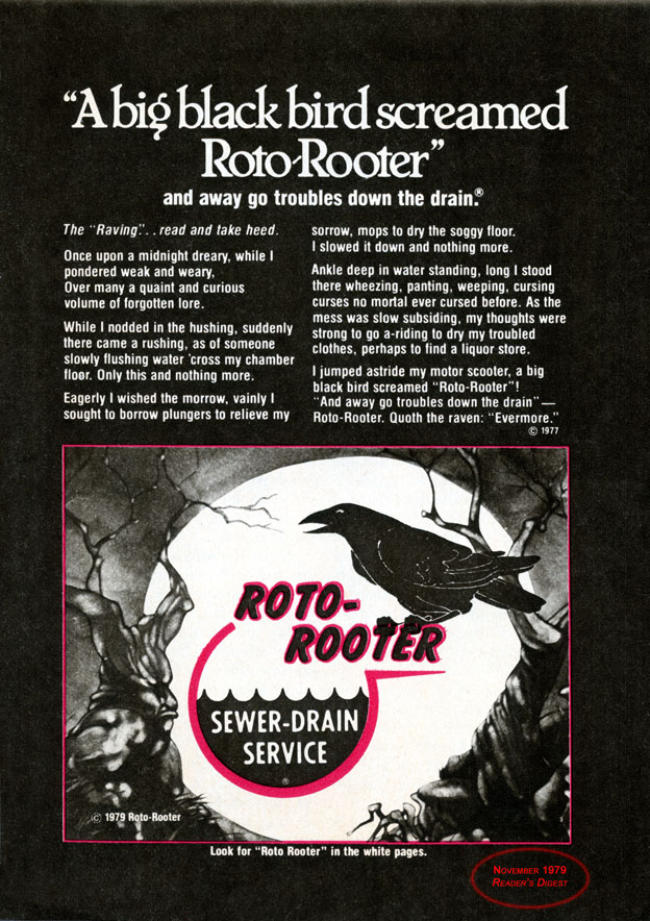 1845 poem, The Raven. Every fall, Roto-Rooter brings back this classic for the Halloween season.